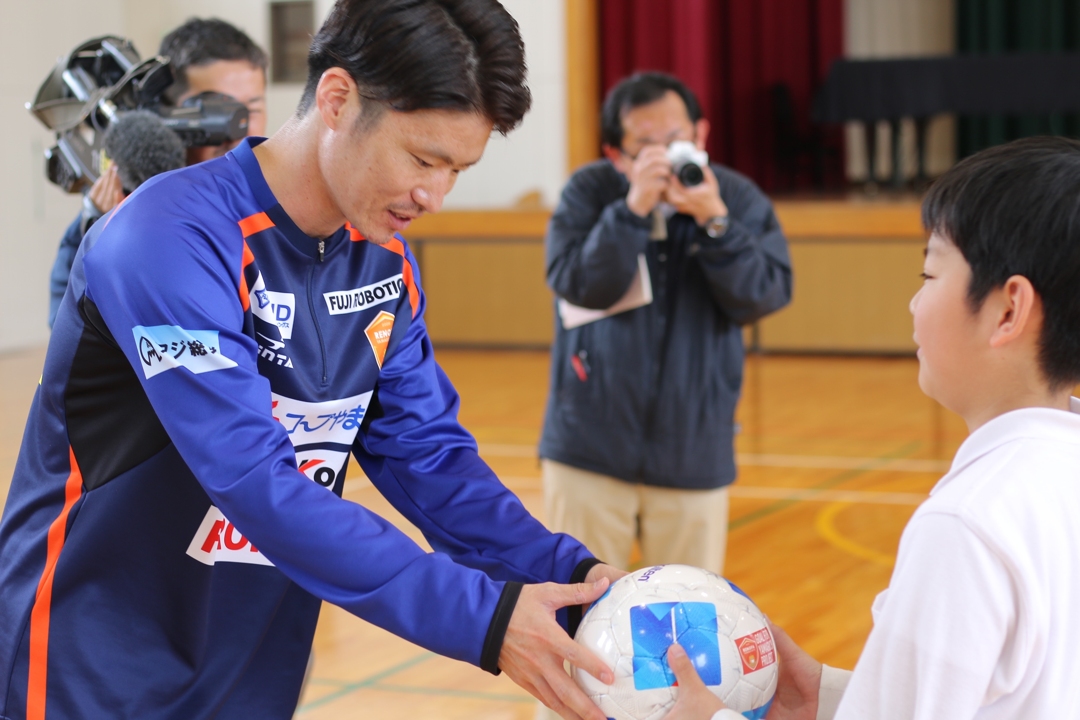 僕が小学生の時にも、ガンバ大阪の選手が来てくれたことが嬉しかったのを覚えていますし、逆の立場になって、子どもたちが喜んでくれている顔をみたら、たくさんゴールを決めてレノファをもっと知ってもらえたらと思います。