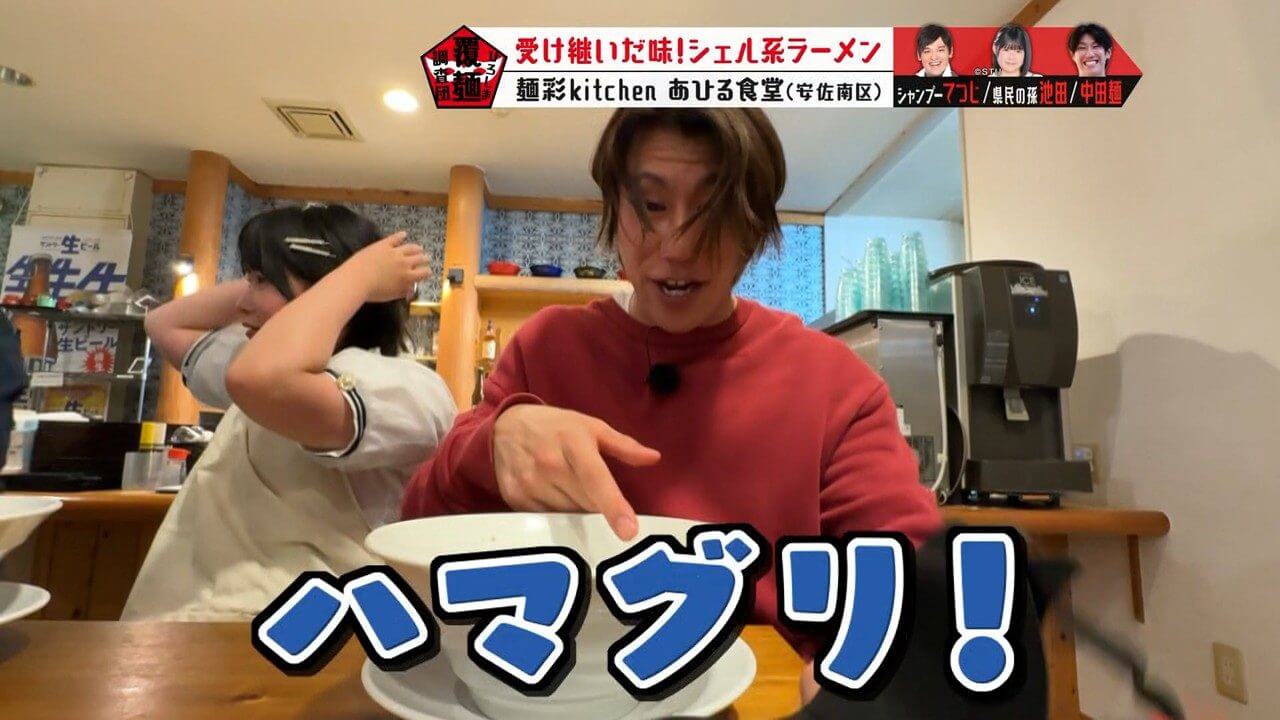 貝を食べ、ハマグリだと話す中田麺。しかし、てつじは疑いの目を向けます。