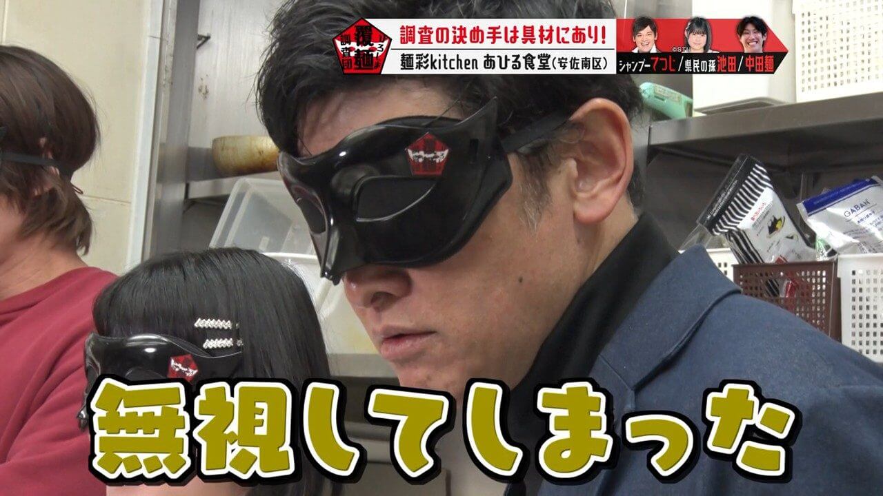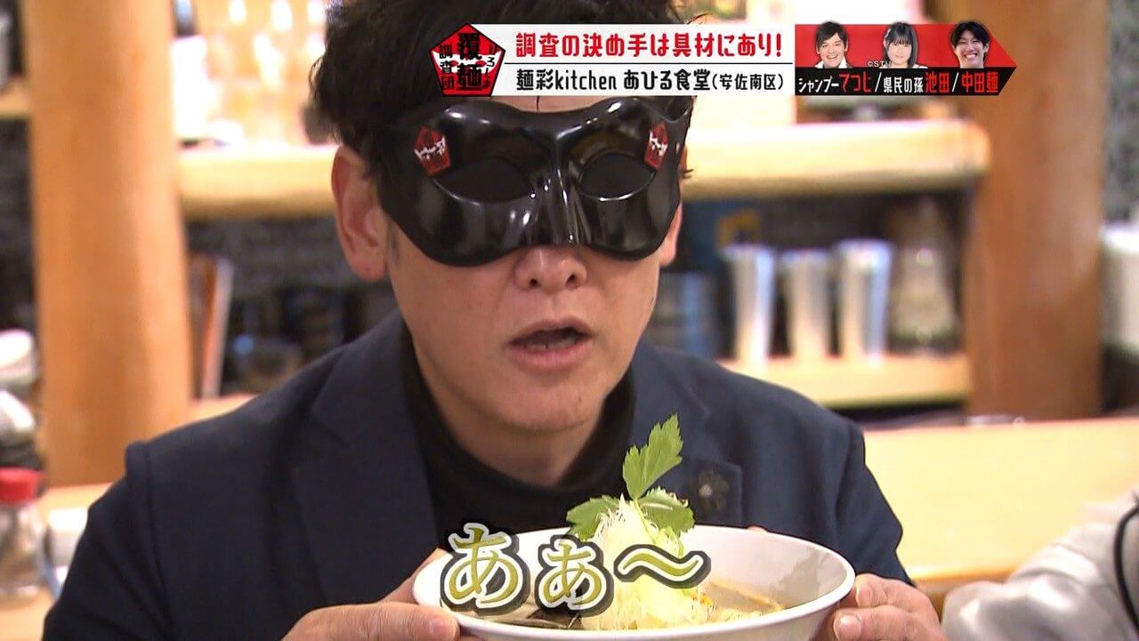 目隠し(通称:覆麺)をして感覚を研ぎ澄まし、至高の一杯を調査します。