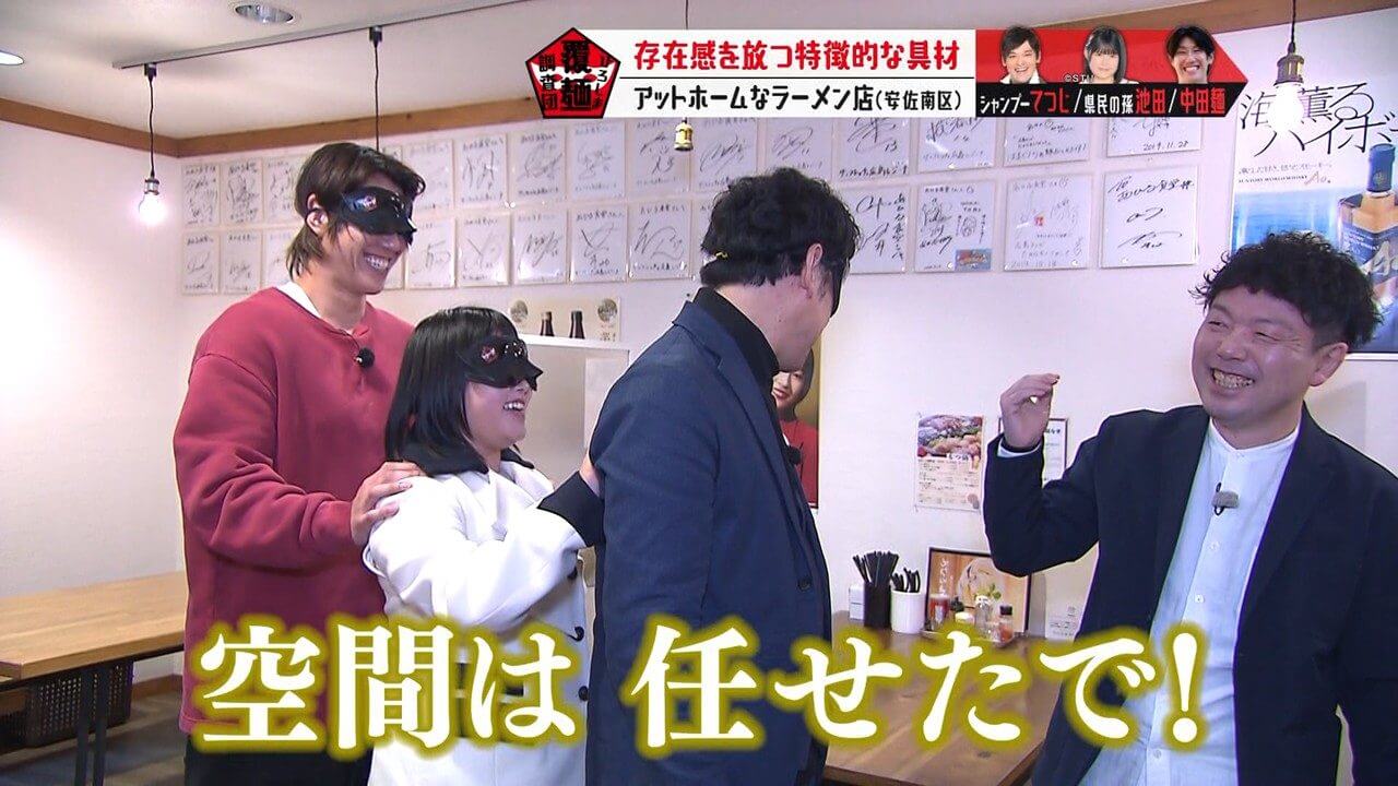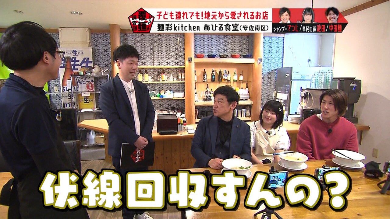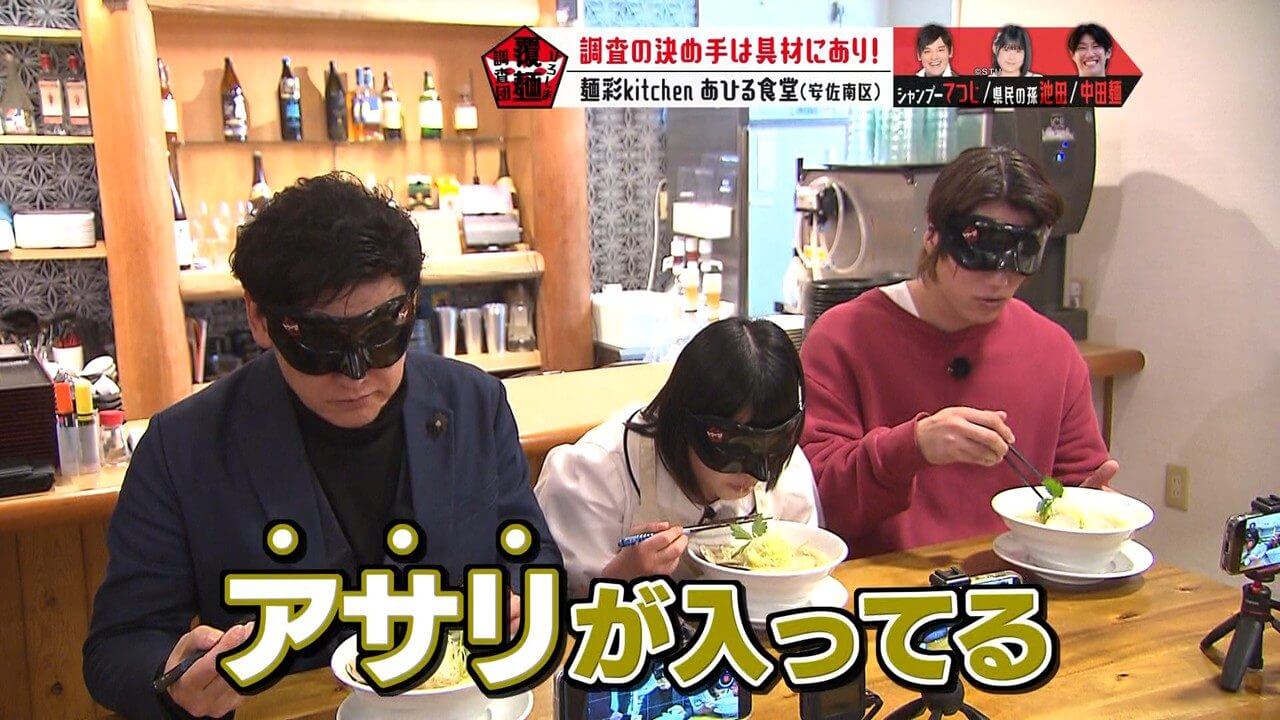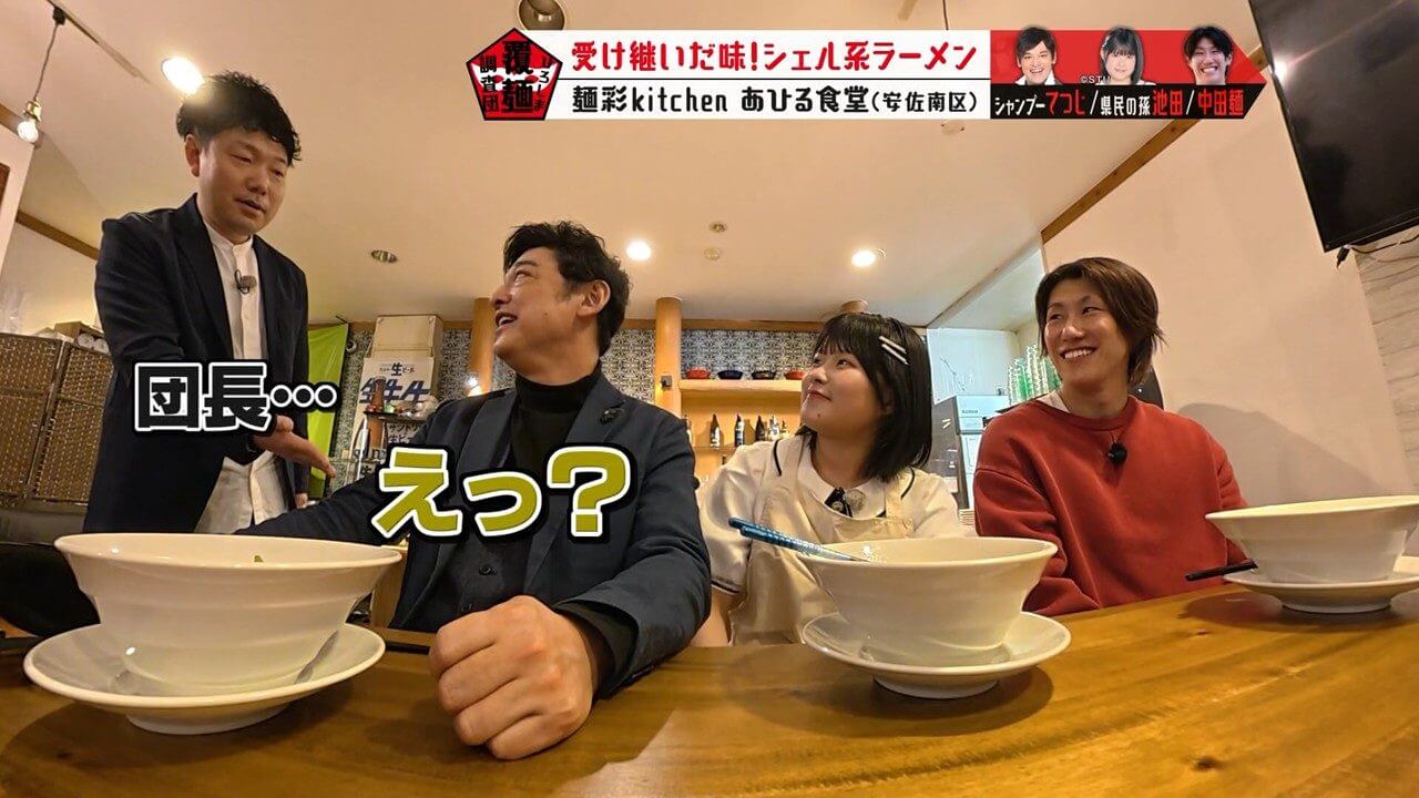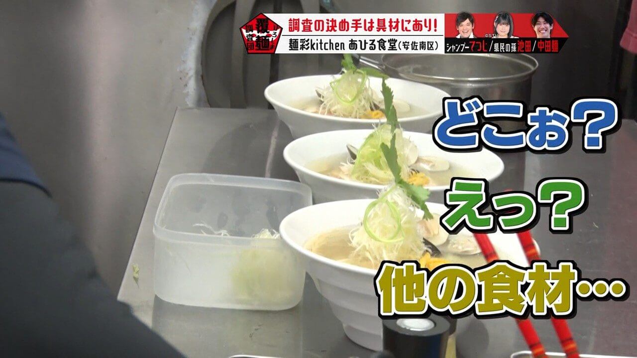 具材や海鮮のうまみの秘密を考察するよう、池ちゃんと中田麺に指示を出すてつじ。