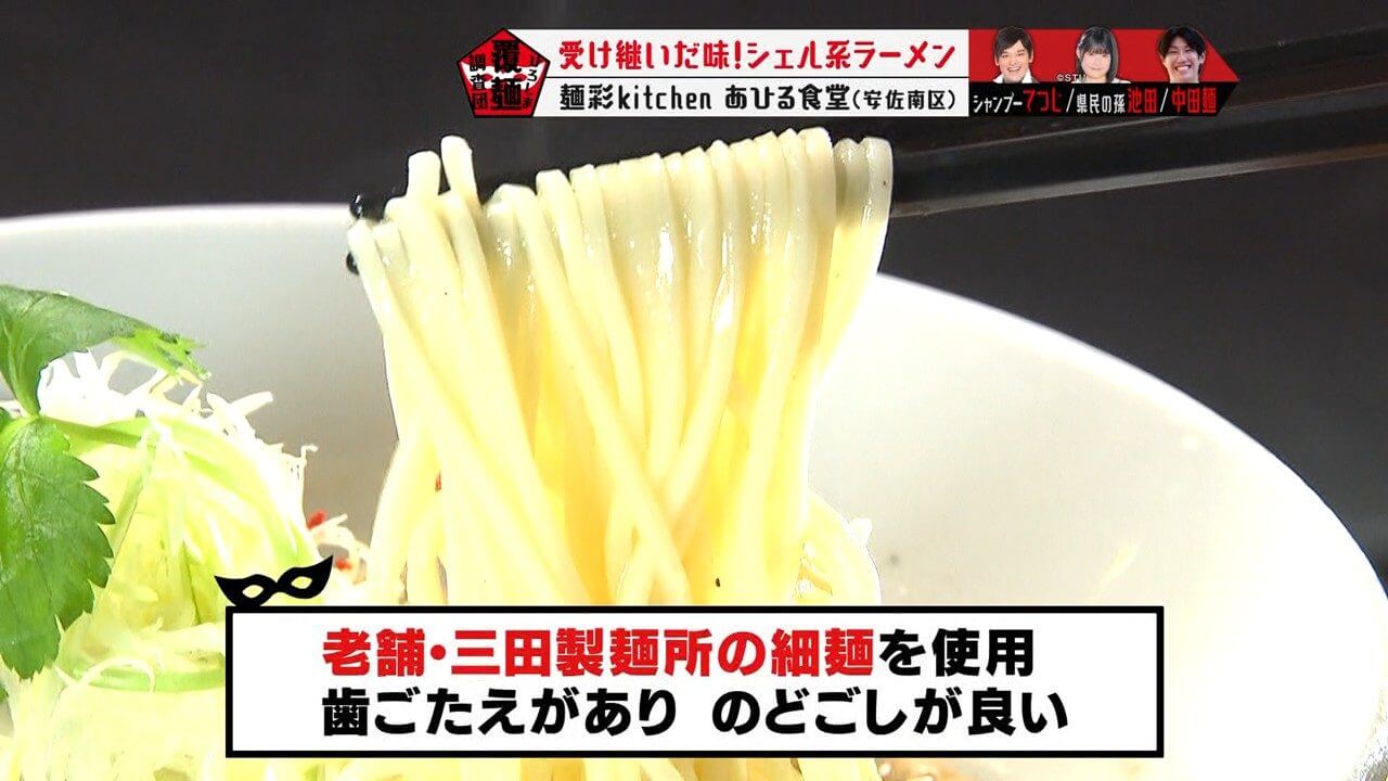 てつじが「エッジが立っている」と表現した麺は、三田製麺所の細麺。歯ごたえがあり、のどごしが良いのが特徴です。