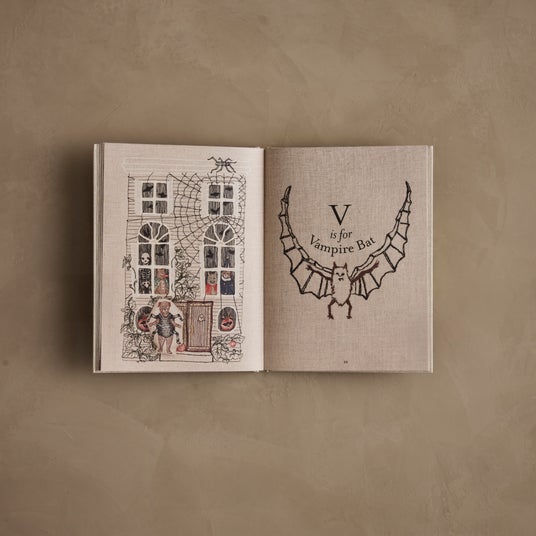 『B is for Bears (ベアーのB)』『C is for Cats (キャッツのC)』 『V is for Vampire Bat (ヴァンパイア コウモリのV)』など、愛らしくもどこかユーモラスな動物たちが、文字の形とともに表現されています。子どもから大人まで楽しめる内容で、ギフトにも最適な一冊です。