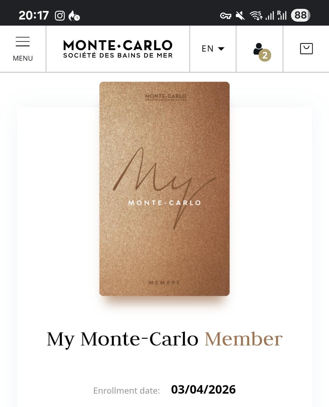 モンテカルロ ロイヤルティ プログラムに登録しており、利用可能な最下層のカードを持っています *写真を添付しました*