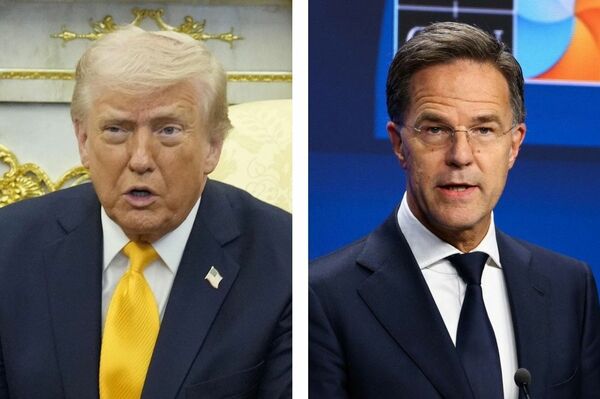 トランプ米大統領(左)とNATOのルッテ事務総長(写真:ロイター=共同通信社)