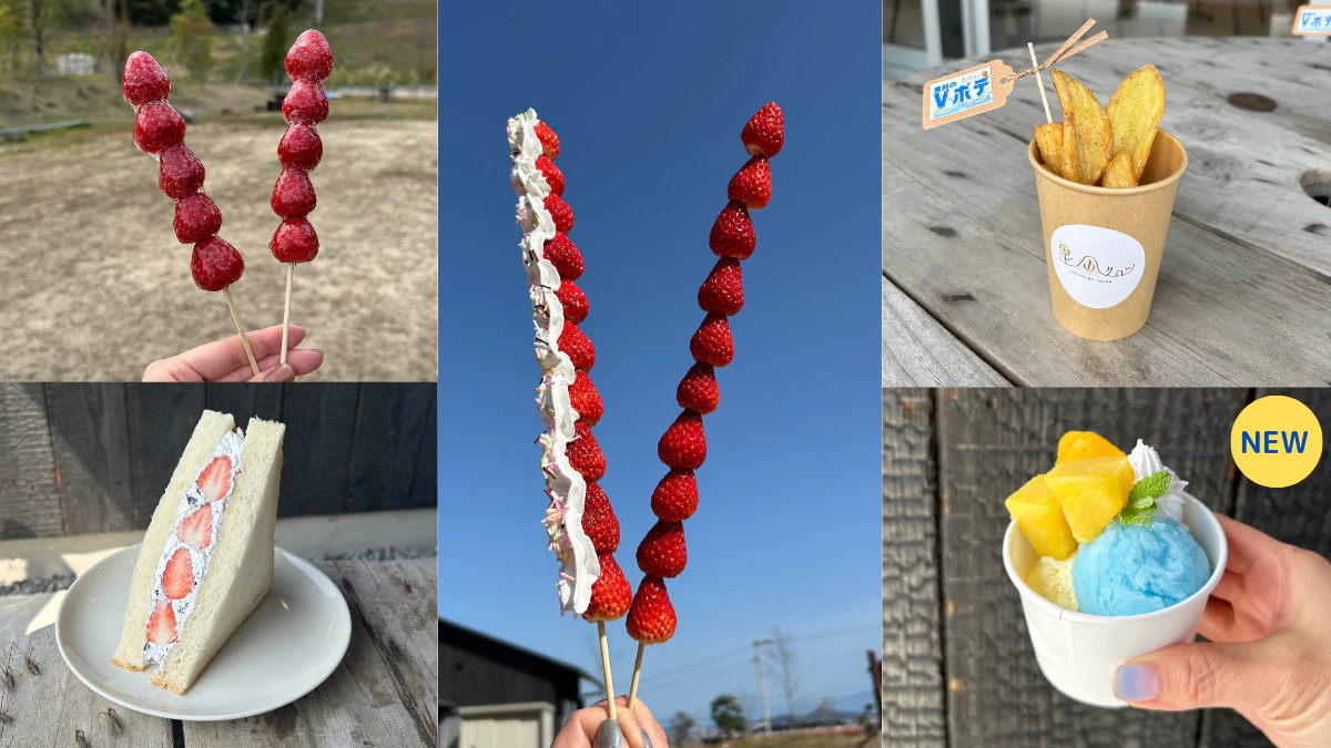 その他、チョコチップ入りのいちごサンド、いちご飴、FC今治アイス、片手で食べられるワンハンドケーキなどのスイーツも多数ご用意しております。