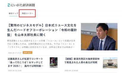 ※各特設ページは、にいがた経済新聞トップページ上部のタブ「特設コーナー」からご覧いただけます。