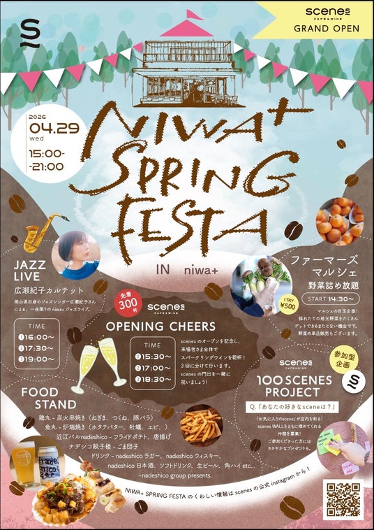 公式情報:「scenes CAFE & WINE」公式Instagramにて「NIWA+ SPRING FESTA」の詳細情報を随時更新いたします。