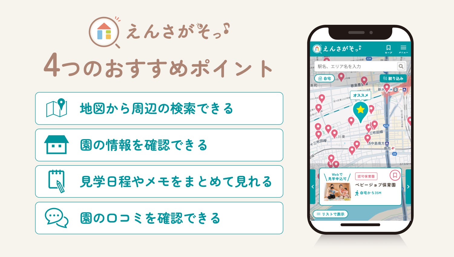 ■BABY JOBが提供する保育施設探しサポート「えんさがそっ♪」