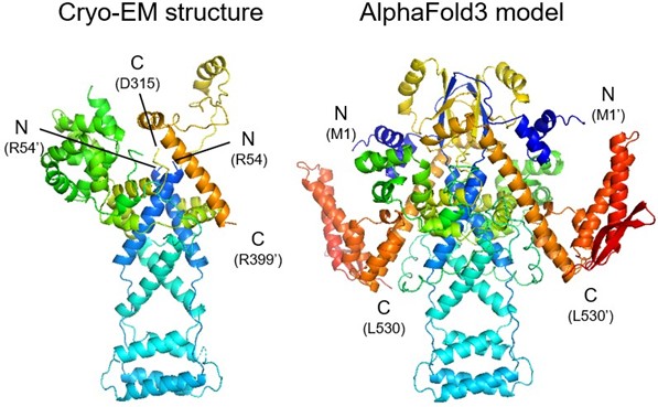 pB602Lはホモ二量体として存在する。N末端領域は二量体化ドメイン、C末端領域は分子シャペロンドメインとして機能する。AlphaFold3では二回対称の分子構造が予測されたが、cryo-EM構造(柔軟性が高いC末端部は見えていない)では二個のプロトマーが異なるコンフォメーションを有しており、二個のC末端領域が近接し、協調して分子シャペロンとして働くことが示唆された。