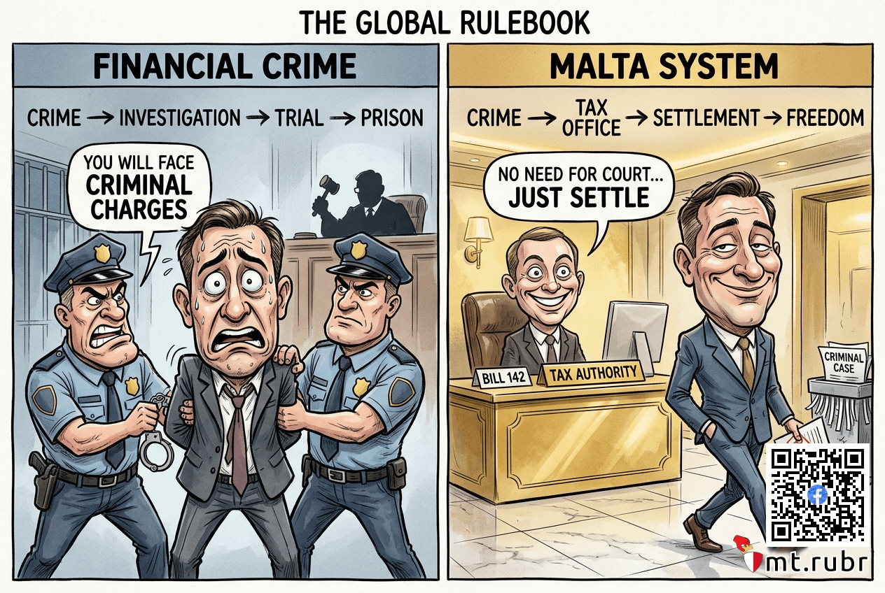 [mt.rubr] マルタの新法により、税金犯罪容疑者は示談金を支払って釈放され、エリート層が保護され、汚職訴追が弱まる。