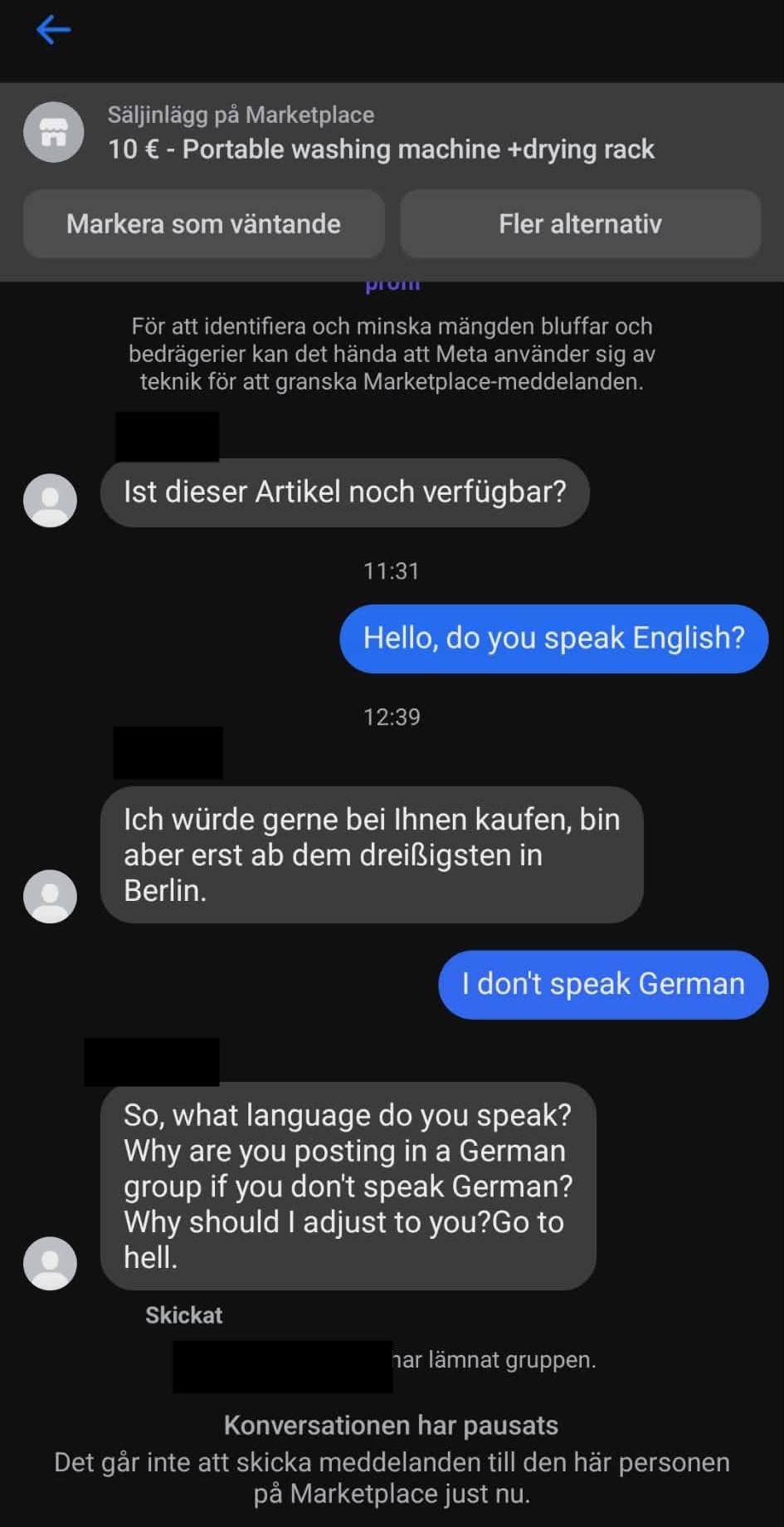 ドイツから引っ越してきたスウェーデン人が家具を売ろうとしたときのドイツ人の通常の反応
