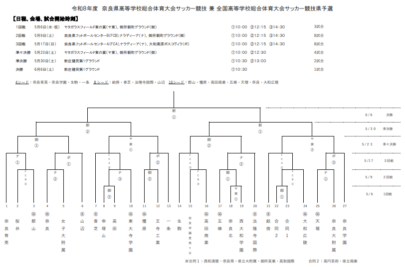 2026年度 奈良県高等学校総合体育大会サッカー競技 兼 全国高等学校総合体育大会サッカー競技県予選(インターハイ予選)