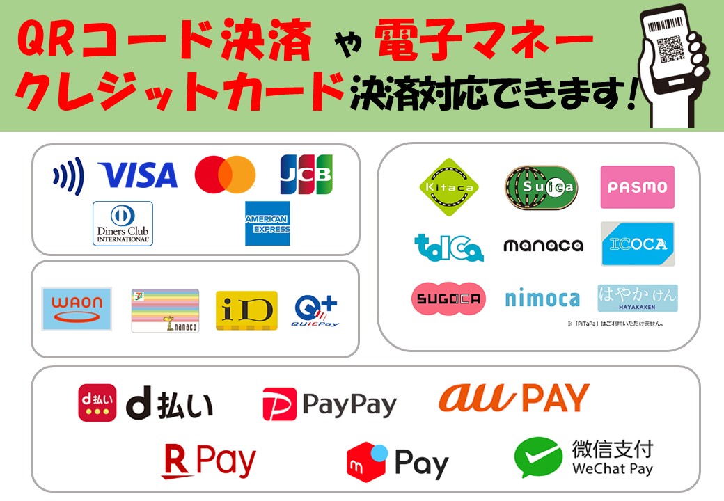 現金でのお支払い以外にも下記のお支払方法がご利用いただけます。