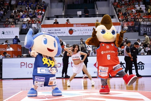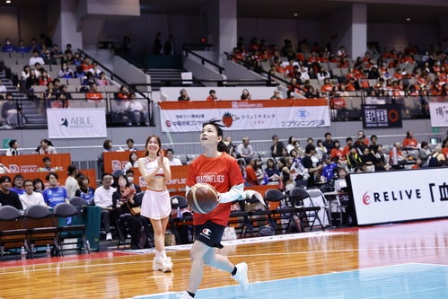 ハーフタイムでは、アクア☆マジック HINA・すさたまくん・広島ドラゴンフライズ アンバサダー MIYUKO の「チーム島根」と、D*Flare RIKO・SHIZU・モヒカンアビィの「チーム広島」で「島根 vs 広島 フリースロー対決」を開催いたしました。