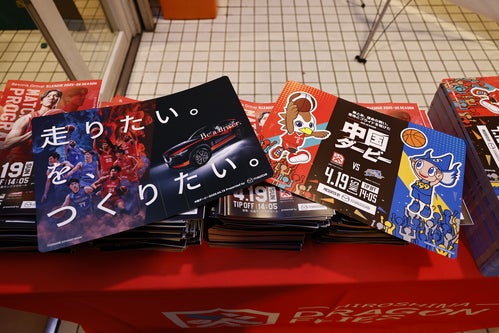 中国ダービー開催を記念して、マツダ株式会社より広島ドラゴンフライズと島根スサノオマジックの選手・マスコットがデザインされた応援ハリセンを先着3,000名様にプレゼントいたしました。