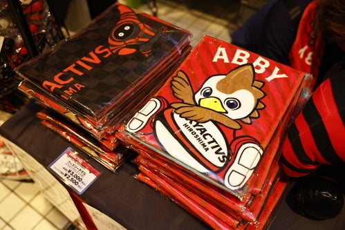 マツダスカイアクティブズ広島 特設ブースでは、マツダのラグビーチーム「マツダスカイアクティブズ広島」グッズや「ウィズリー×モヒカンアビィ」コラボタオル、新商品のうぃずゆ~シールなどを販売いたしました。
