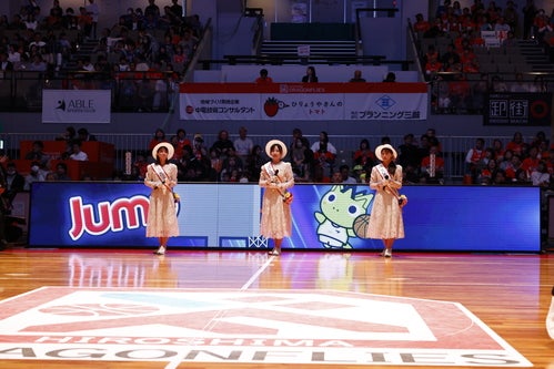 試合開始前には、2026ひろしまフラワーフェスティバル フラワーアンバサダーの林綾弥美 さん、工代若菜 さん、松村愛眞 さんによる”2026ひろしまフラワーフェスティバル”のPRを行いました。