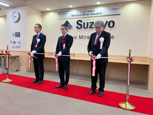 鈴与株式会社(本社:静岡市清水区、代表取締役社長:鈴木健一郎)は、北海道大学(所在地:札幌市、総長:寳金清博)とネーミングライツパートナー事業契約を締結し、2026年4月17日(金)、同大学にて記念式典を開催しました。本契約に基づき当社は、北海道大学附属図書館 北図書館2階アクティブラーニングフロアに「Suzuyo Mirai Square(鈴与みらいスクエア)」の愛称を付与しました。