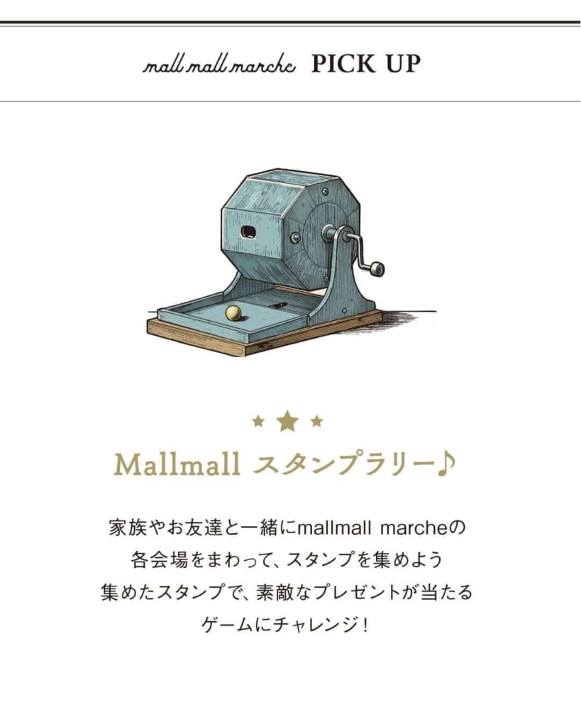 さらに!イベント会場での楽しい瞬間を写真に収めてInstagramで投稿するとプチギフトがもらえる企画や、スタンプラリー企画もありますよ♩詳しくはmallmall marcheのインスタグラムをチェックしてくださいね✨