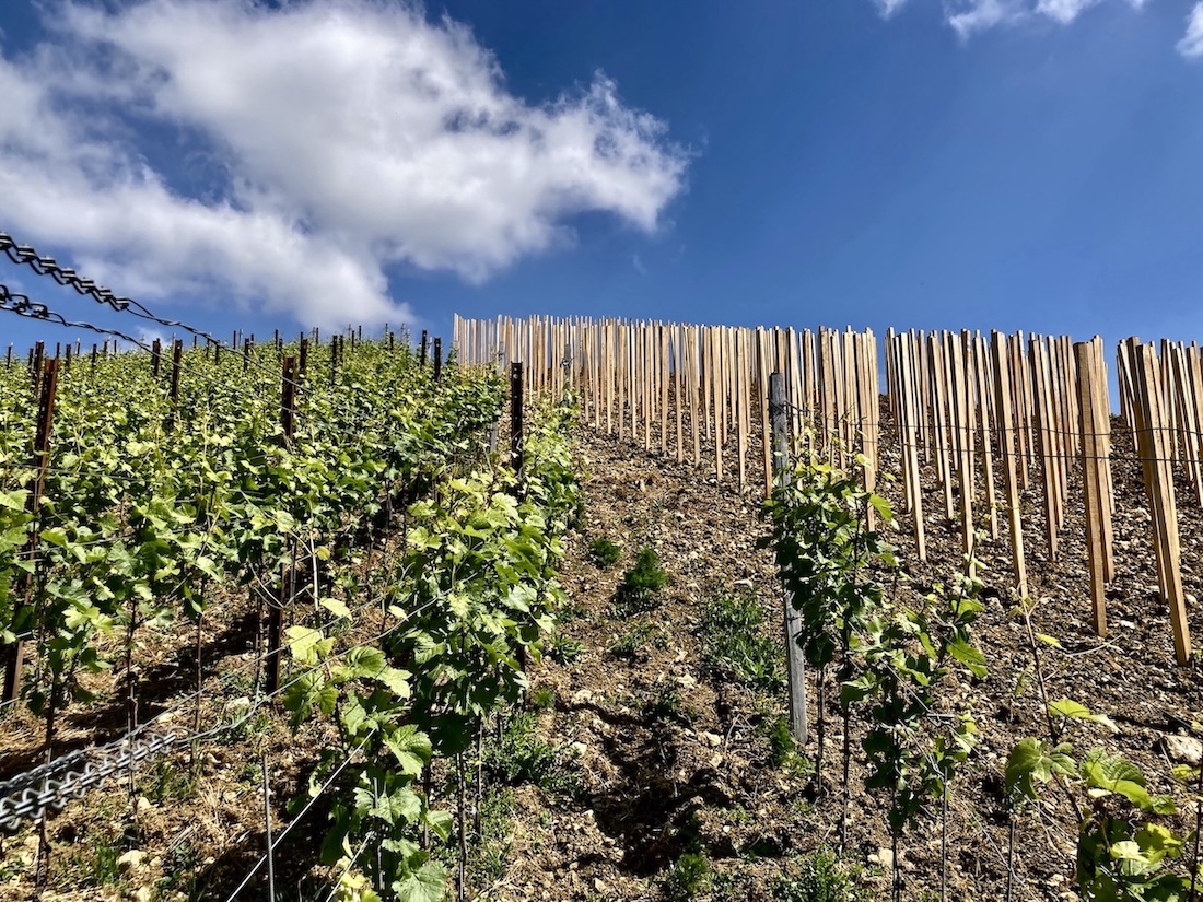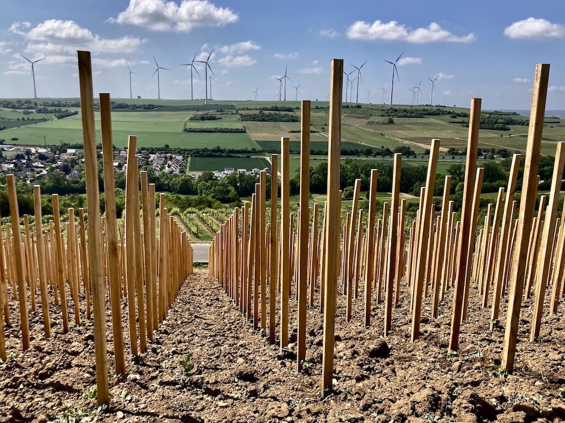昨年、夏の始めに、密植されて間もないブドウ畑を歩いた。支柱があるので、将来の畑の姿が容易に想像できる。20年前、ルーヴァー川流域の、カートホイザーホーフの古い区画の収穫に参加した時、畑の中が思いがけず涼しかったことを思い出した。密植畑は、急斜面であることを感じさせず、生い茂ったブドウに守られているようだった。機械化できないため、畑作業は過酷だが、人間の居場所だという心地良さがある。