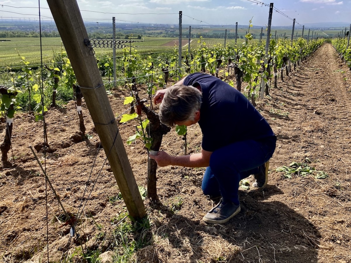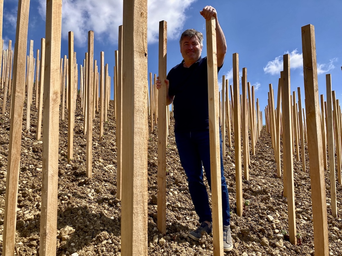 ヴィレーヌ氏はまだ子供だった戦後間もない頃、ブドウ畑の中がとても暗かったことを記憶しているそうだ。当時の畑は、少年がその中にすっぽり飲み込まれ、暗さを感じるほどの密植だったのだろう。密植で得られるブドウはわずかだが、その質は良く、樹齢がはるかに伸びるという話もクラウス=ペーターたちを魅了した。そして今年の春、クラウス=ペーター、フェリックスと仲間たちは、ツェラータールの畑で、1ヘクタールあたり32000本のシュペートブルグンダーの密植を実行に移し、フィロキセラ来襲以前の畑の姿を現在に甦らせようとしている。