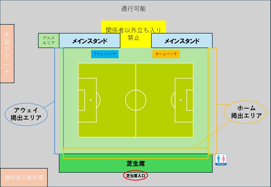 スタジアムの入口、観戦エリア、注意事項などはこちらをご確認ください。