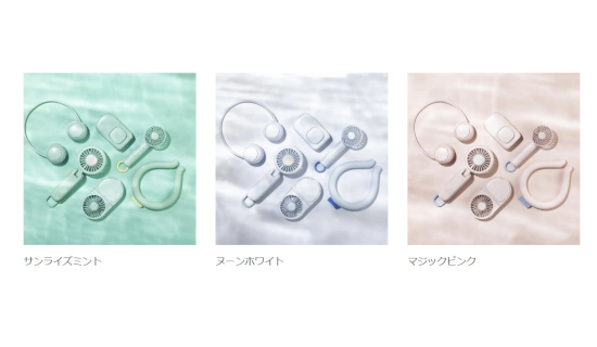 カラーは、「サンライズミント」「ヌーンホワイト」「マジックピンク」の3色。日の出から夕暮れまでの海辺の情景を連想させる色合いで、機能性だけでなく持つ楽しさにもこだわっている。
