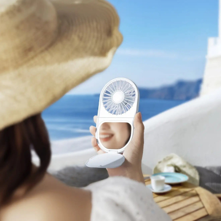 メイクチェックもできる「折りたたみ式ミラーファン」