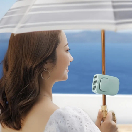 日傘やリュックに装着可能。移動中でもピンポイント送風ができ、デスクファンとしても活躍する。価格は2480円。