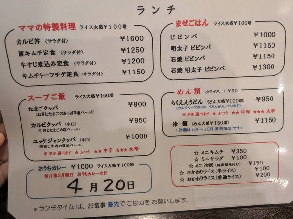 お昼はママのおいしい韓国ランチがリーズナブルな価格で楽しめます。