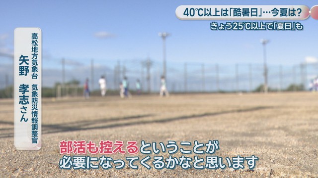 「長期予報では暑くなるという予想になっています。今年も暑さには十分注意していただきたい。学校等で考えますと、部活も控えるということが必要になってくるかなと思います」