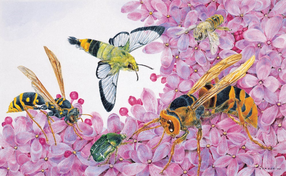 『ファーブル昆虫記』より「リラの花まつりとキンイロハナムグリ」1978-1988 年 ©Chikabo Kumada