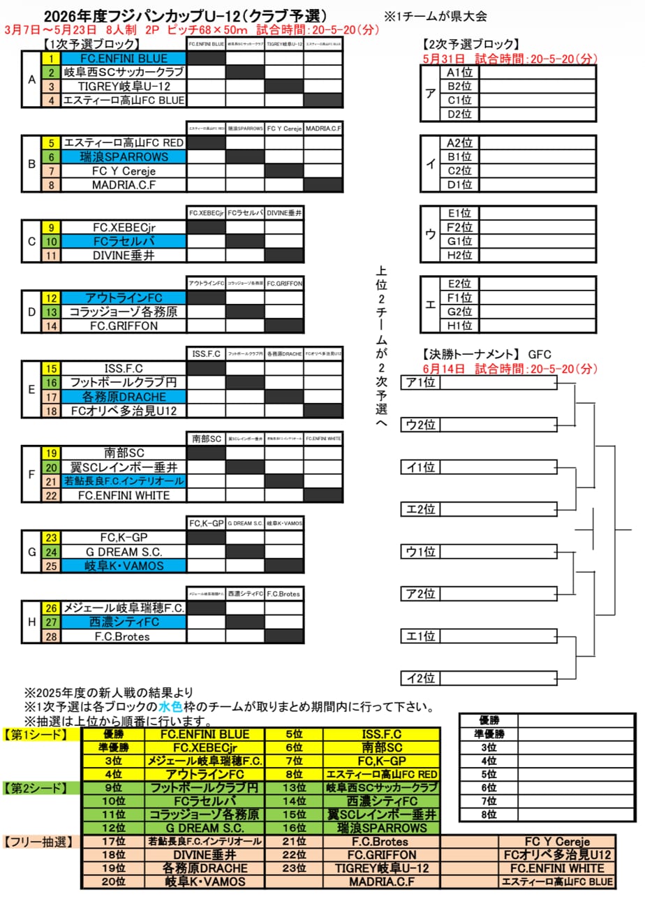 2026年度フジパンカップU-12 岐阜クラブ予選