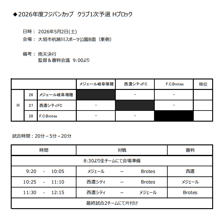 メジェール岐阜瑞穂FC、西濃シティFC、F.C.Brotes