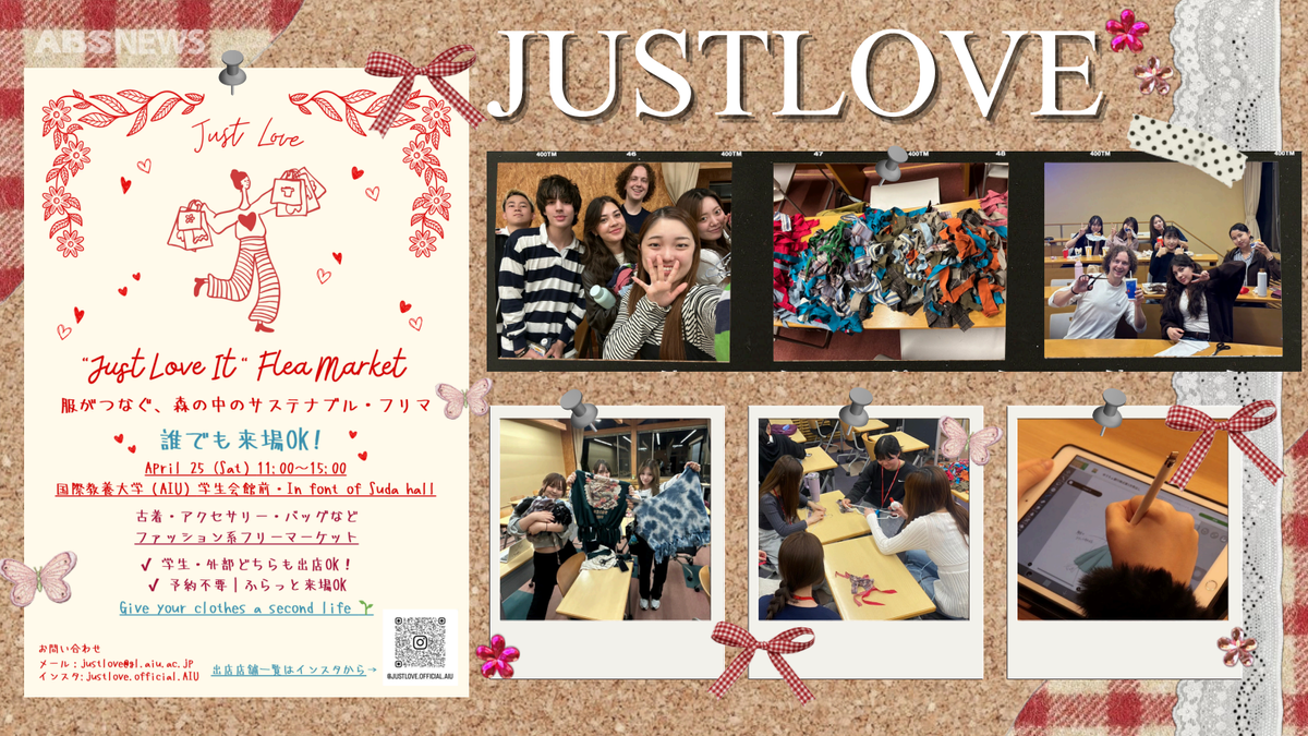 国際教養大学の学生が、サステナブルをテーマとしたフリーマーケットイベント「JUST LOVE IT! ~服がつなぐ、森の中のサステナブル・フリマ~」を開催します。