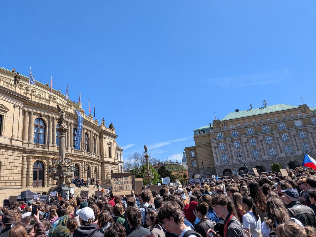 ČTとČRoを支援するプラハでの今日の学生デモの写真 詳細: https://www.idnes.cz/zpravy/domaci/protesty-studentu-media-nedame-ceska-televize-ministerstvo-kultury-poplatek-rozhlas.A260421\_144143\_domaci\_jira Czech Republic