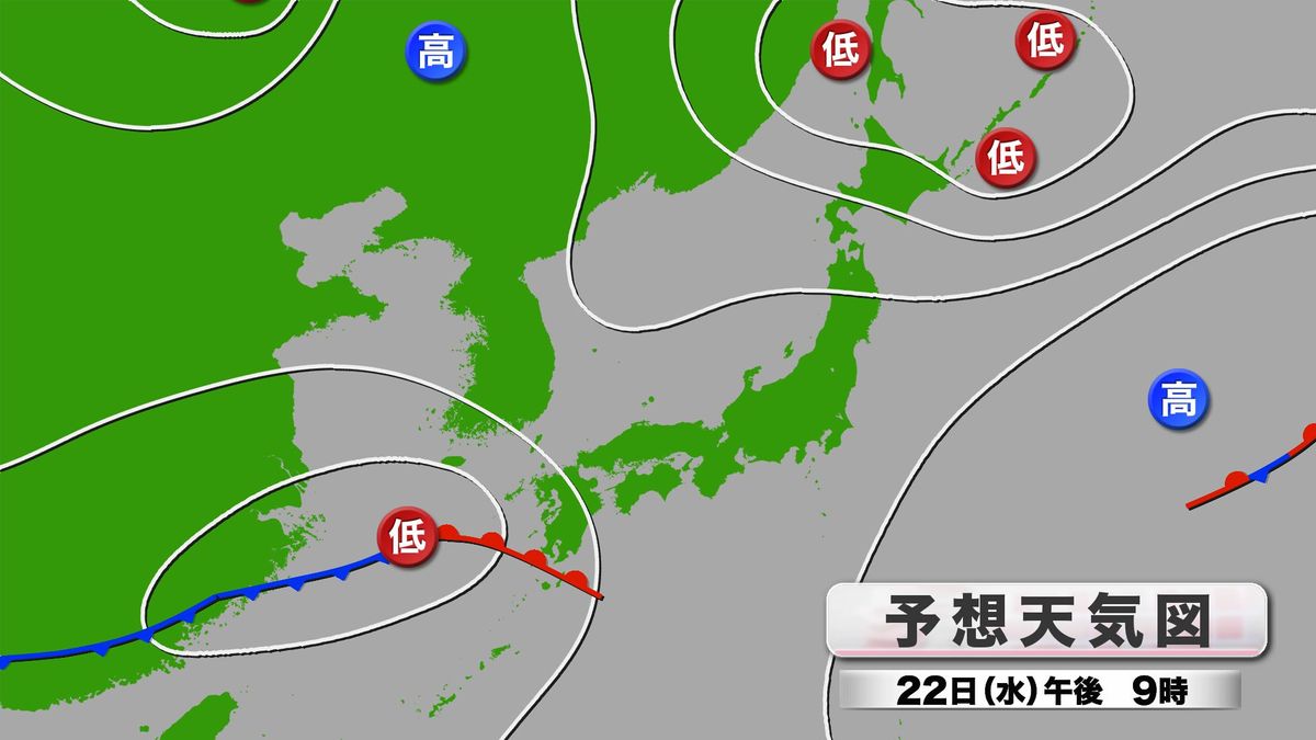 県内に雨雲が流れ込むのは、きょう22日(水)の夕方ごろになると見込んでいます。