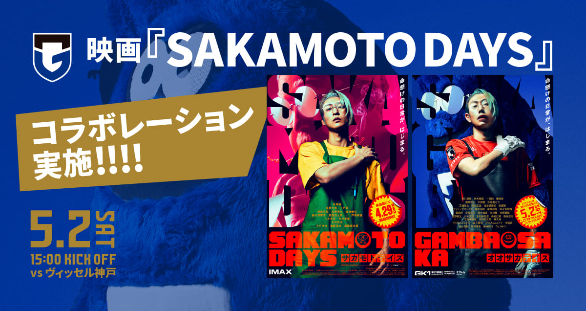 このたび、4/29(水)公開の映画『SAKAMOTO DAYS』とのコラボレーションが決定しましたのでお知らせいたします。5/2(土)にパナソニックスタジアム吹田で開催される明治安田J1百年構想リーグ 第14節 ヴィッセル神戸戦において、映画とのスペシャルコラボビジュアルを展開するほか、SNSキャンペーンやコラボグルメの販売など、多彩なコラボイベントを実施いたします。