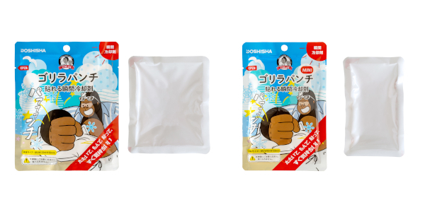 サイズは、「ゴリラパンチ」が12.0×15.0cm、「ゴリラパンチ MINI」が9.0×15.3cmで、冷却したい部位に合わせて使い分けられる。