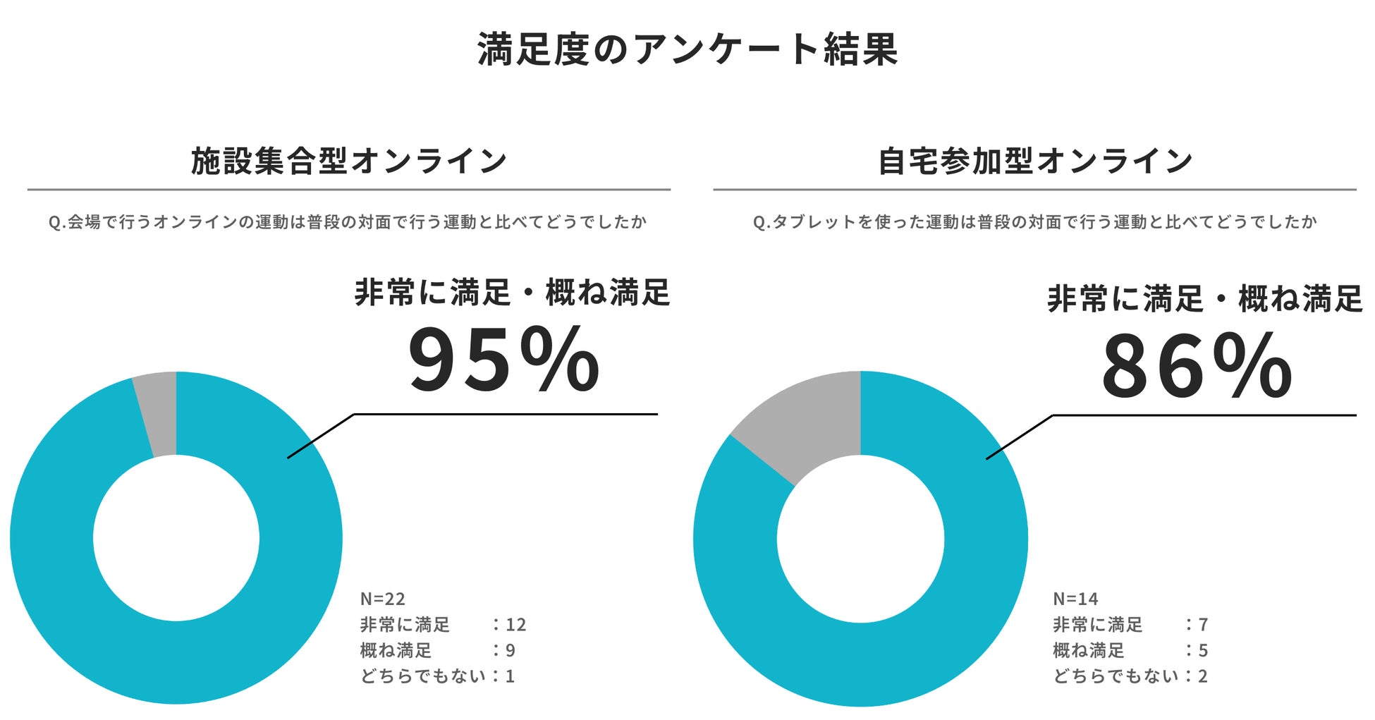 実証実験の結果、参加者の約9割が満足・継続意向を示し、「対面と変わらず運動できた」「画面越しでも双方向で会話しながらできるので運動の質が高い」といった声が寄せられました。