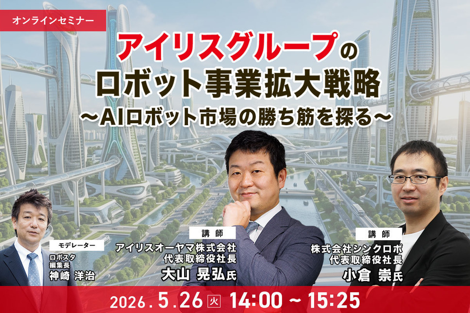 5月26日(火)には「実装」と「販売」の両輪でAIロボット市場を開拓している、アイリスオーヤマを筆頭としたアイリスグループによる「アイリスグループのロボット事業拡大戦略 ~AIロボット市場の勝ち筋を探る」を開催。