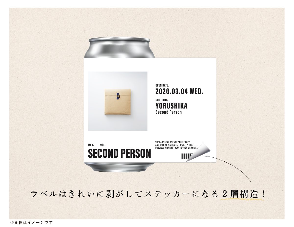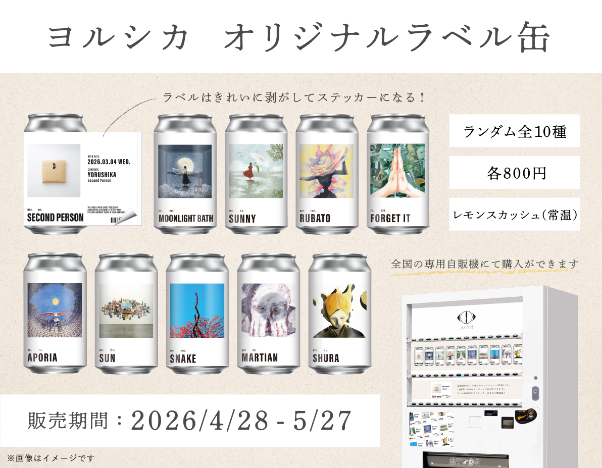 ヨルシカ「二人称展」の開催を記念して、オリジナルラベル缶を全国の約60の施設で4月28日(火)より発売が決定いたしました。