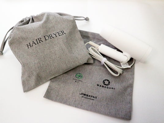 あいちサーキュラーエコノミー推進プロジェクトチームご協力のもと、使わなくなった制服を再資源化し、客室に設置しているドライヤーを収納する巾着袋に活用しています。