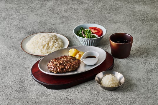 すね肉を贅沢に使用し、噛むほどに溢れる肉汁と旨味が楽しめるハンバーグステーキです。他にも濃厚デミグラスソースで愉しむハヤシライスでもお楽しみいただけます。お腹も心も満たされる特別な味わいを店頭でお届けいたします。