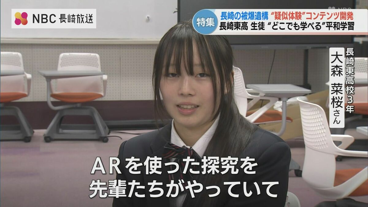 長崎東高校 大森菜桜さん:「ARを使った探究を先輩たちがやっていて、その発表を見た時に、もっと平和を多くの人に考えてもらうために何かしたいと思った」