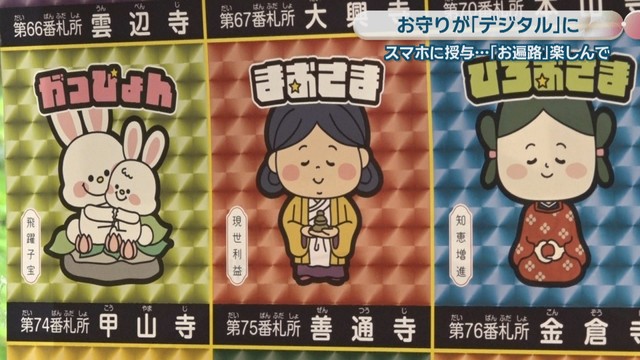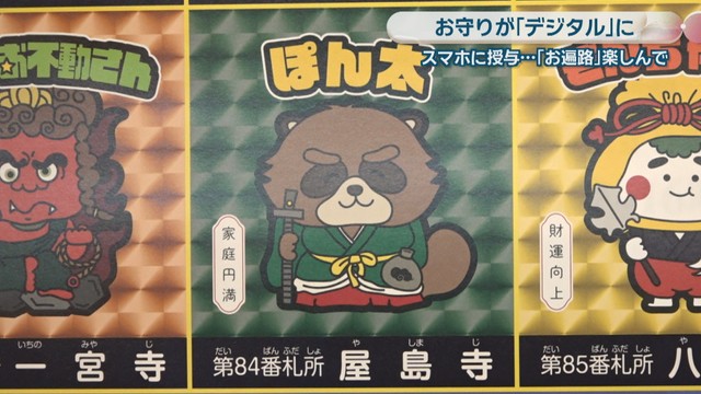 高松市の屋島寺は「ぽん太」など、それぞれの寺にちなんだキャラクターがデザインされていて、全てを集めると、秘密の電子お守りが授与されます。