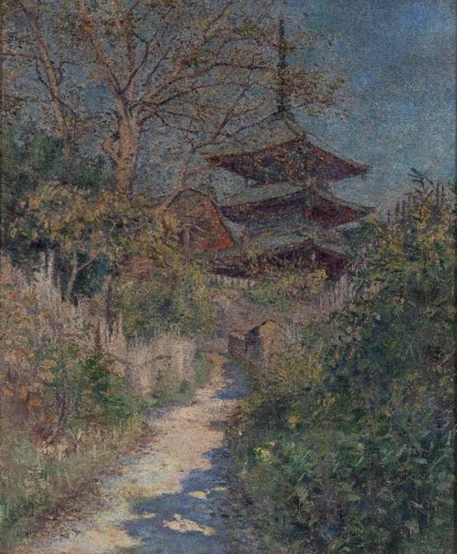 久米桂一郎「清水秋景図(山径晩暉)」 奈良県立美術館蔵