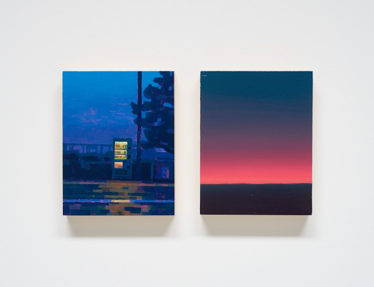もうひとつの展示は、KOTARO NUKAGA(天王洲)で開催された森本啓太による個展「what we told ourselves」である。暗い街中で発光する、街灯やネオンサイン、自動販売機といった人工光を強い明暗法で描き出し、光と影の対比を通して現代都市のありふれた風景に潜む一瞬の物語を静かに浮かび上がらせる。