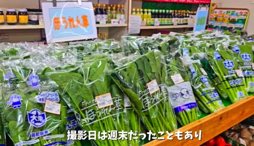 店内には、地元で採れた新鮮な野菜が豊富に並びます。