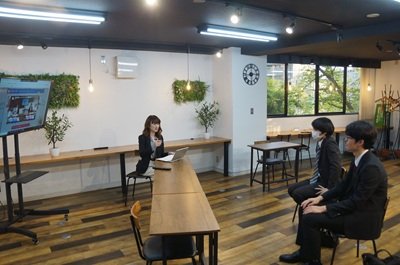 4月20日(月)、株式会社シンミドウ(さいたま市大宮区)のオフィスにおいて、テレビ埼玉で放送中の情報番組「彩の国 就活天国!!」の撮影が行われました。番組制作において、これまでシンミドウ社員が担当していた進行部分を本学学生が担い、制作に参画させていただきました。